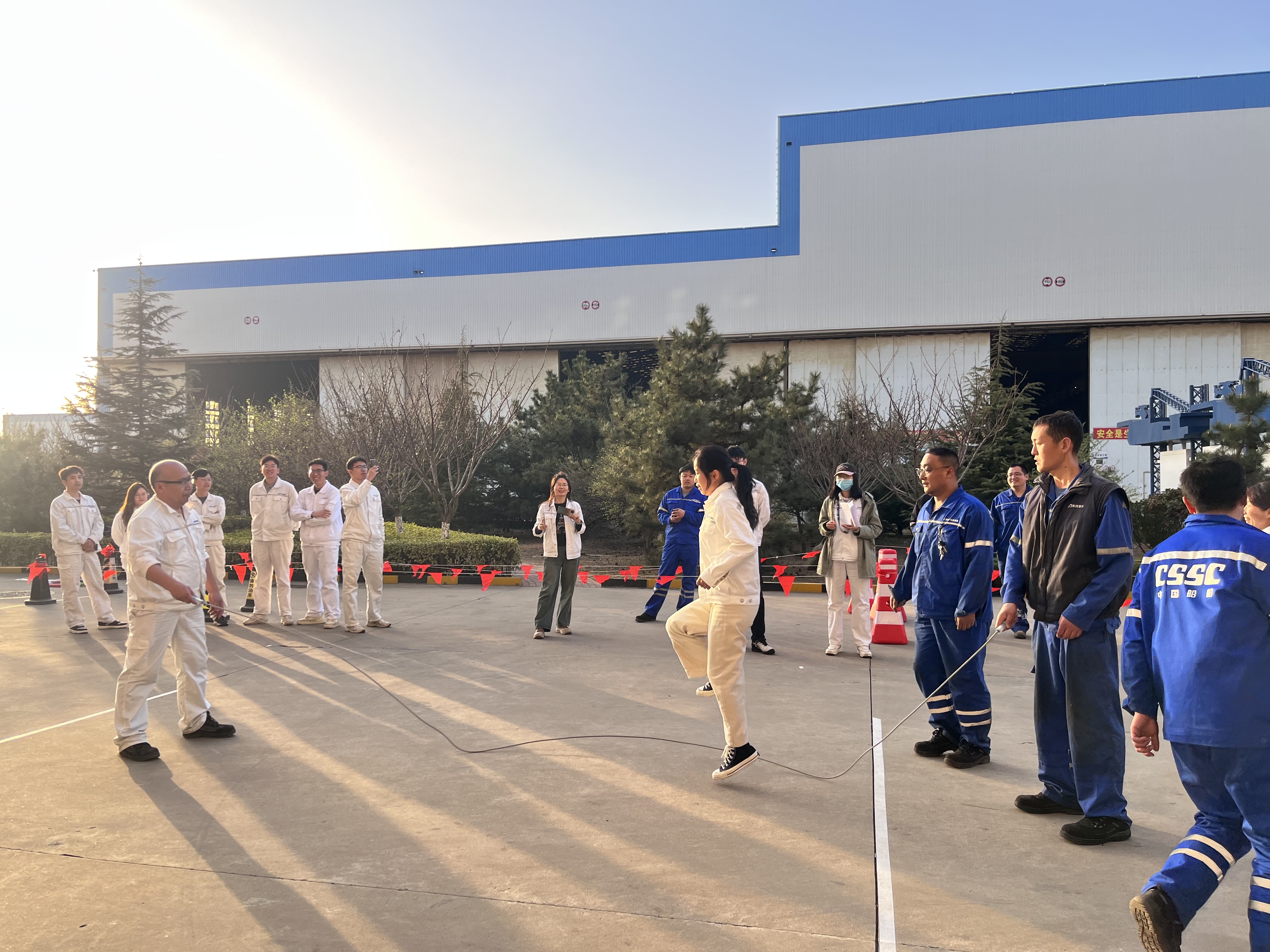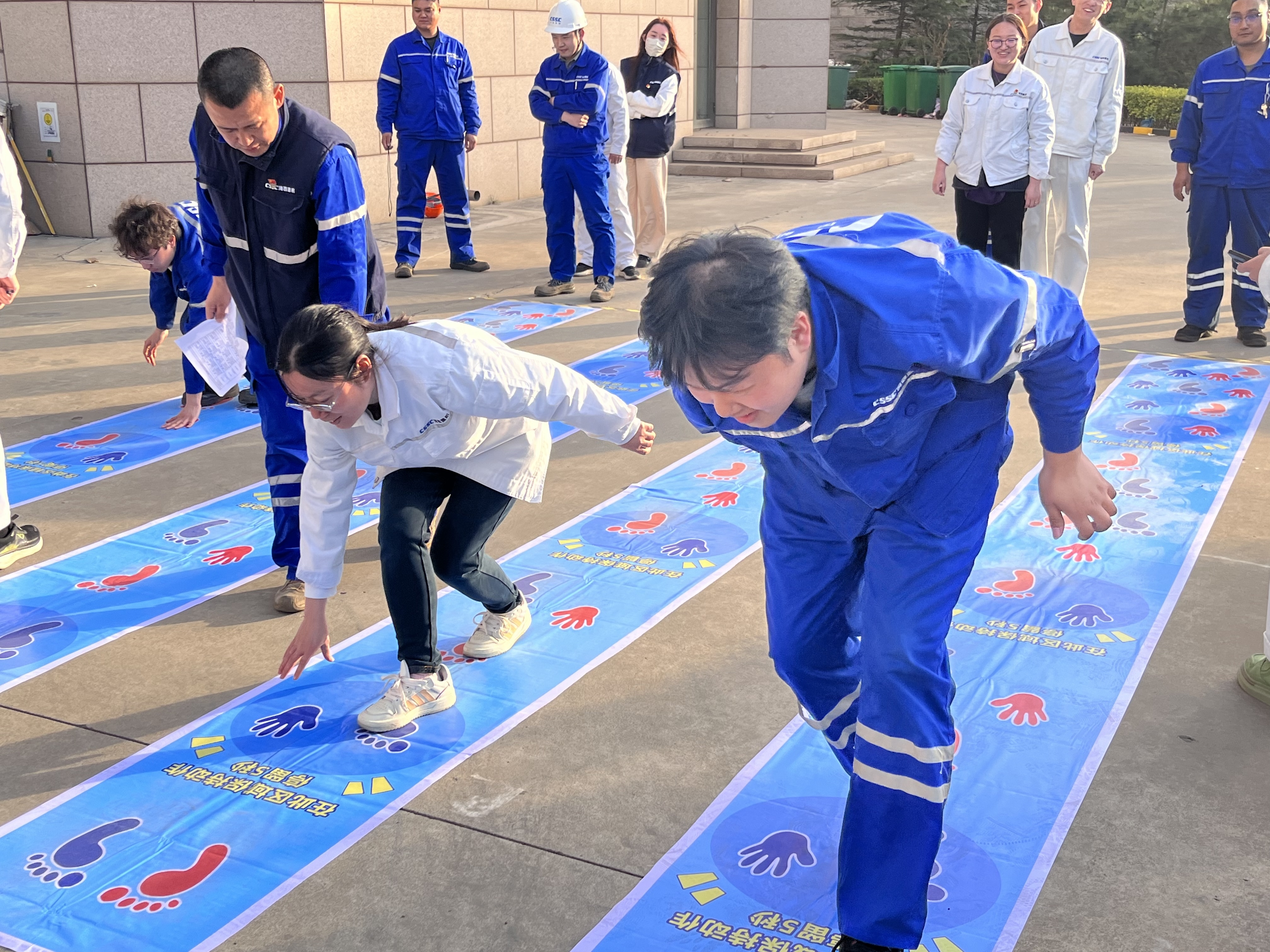備受矚目的“巨人腳步”項目中,港口機械工程所的隊伍以口號統(tǒng)一步伐,如“鋼鐵巨人”般穩(wěn)步?jīng)_向終點,展現(xiàn)了驚人的默契?!凹w跳長繩”更是高潮迭起,跳繩隊員的靈活身姿與搖繩者的精準節(jié)奏相得益彰,最后品質(zhì)管理部以3分鐘完成102次的佳績摘得單項冠軍。技術(shù)中心分會的謝士嬌在“摸石過河”中表現(xiàn)搶眼,她巧妙鋪磚、輕盈跨步,為團隊節(jié)省關鍵時間?!拔覀兣驴墒恰畱?zhàn)術(shù)擔當’!”她賽后笑稱。