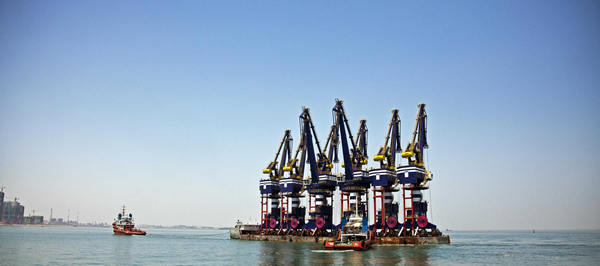 5月4日,青島海西重機(jī)承制的煙臺港8臺MQ2537門座起重機(jī)順利起航發(fā)運(yùn),這是繼3月中旬 10臺MQ4045門座起重機(jī)交付業(yè)主使用以來,今年發(fā)往煙臺港的第二批次港機(jī)設(shè)備。