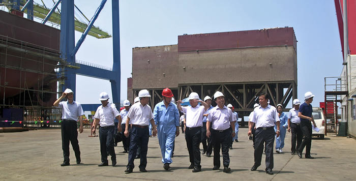 在海西重機(jī)總裝現(xiàn)場,張德平副市長實(shí)地考察了待批量發(fā)往黎巴嫩的岸橋和輪胎吊項(xiàng)目、發(fā)往馬來西亞的帶斗門機(jī)項(xiàng)目、發(fā)韓國鮮光新港的軌道吊項(xiàng)目及承制、調(diào)試的功能性海工平臺(tái)項(xiàng)目等。并聽取了海西重機(jī)董事長孫國慶關(guān)于企業(yè)上半年經(jīng)濟(jì)運(yùn)行情況、轉(zhuǎn)型升級(jí)取得的成績以及在目前經(jīng)濟(jì)形勢下的合同承接情況。