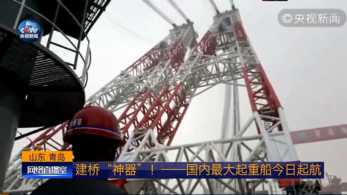 1月9日,由中鐵大橋局投資建造的“大橋海鷗”號起重船在青島海西重機(jī)碼頭完成交付,這是繼“德浮3600噸浮吊”之后,海西重機(jī)交付的又一臺起重設(shè)備。央視新聞進(jìn)行了全程跟蹤報(bào)道。