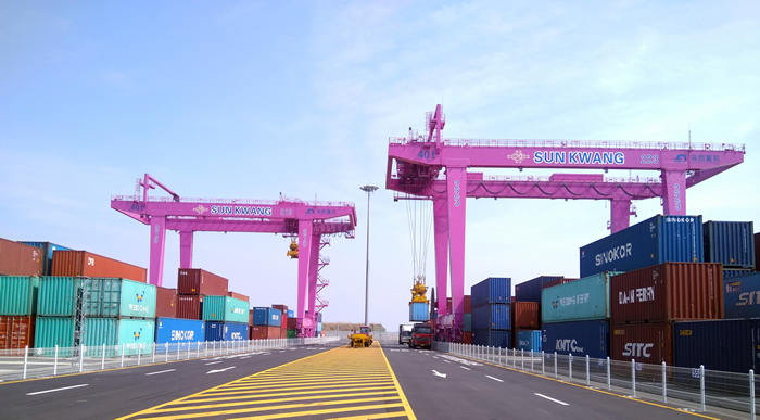 韓國碼頭工作中的自動(dòng)化軌道吊