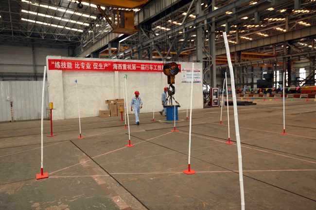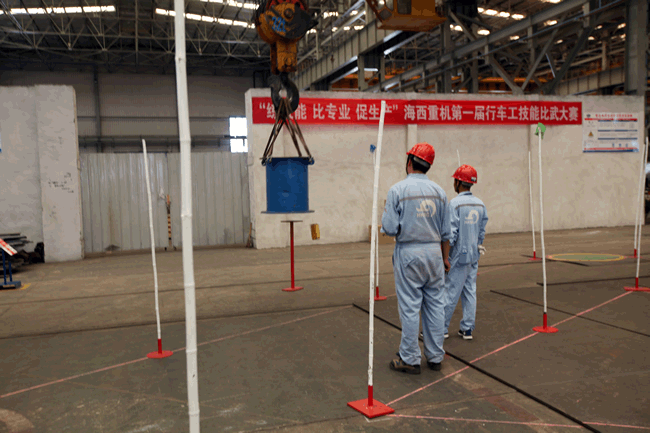 起重吊裝作業(yè)在公司諸多生產(chǎn)工藝環(huán)節(jié)當(dāng)中,是使用頻率較高、危險(xiǎn)性較高的作業(yè)工序,安全、平穩(wěn)、準(zhǔn)確、快速地吊裝作業(yè)是高效生產(chǎn)的關(guān)鍵因素。行車占公司起重吊裝設(shè)備超過(guò)70%,因此行車工為我司的重點(diǎn)生產(chǎn)崗位之一,其技能水平的高低,在很大程度上影響著產(chǎn)品的生產(chǎn)節(jié)奏,甚至對(duì)公司整體上的生產(chǎn)節(jié)拍都會(huì)產(chǎn)生重大影響。公司一貫主張“不僅要有好的裝備,還要把裝備維護(hù)、保養(yǎng)好,更要把設(shè)備功用足用好”,在此背景下,為檢驗(yàn)公司行車工的技能實(shí)力,提高行車工崗位意識(shí)和技能水平,促進(jìn)行車工自主學(xué)習(xí)、苦練技能,進(jìn)一步提升公司安全、高效的生產(chǎn)能力,由公司黨委主辦,工會(huì)承辦的行車工技能比武大賽應(yīng)運(yùn)而生。