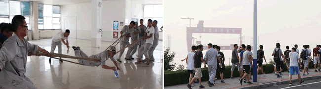 盡管早晨溫度已然很高,入職新生們堅持每天出早操,開展各種軍事訓練,磨練意志的同時培養(yǎng)紀律意識和協(xié)作精神,塑造員工良好的職業(yè)素養(yǎng)。
