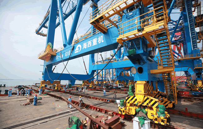 7月31日,海西重機(jī)為山東高速交通物流投資有限公司制造的2臺(tái)65T-46m岸邊集裝箱起重機(jī)順利發(fā)運(yùn),這是繼7月22日東營(yíng)廣利港7臺(tái)MQ2530門(mén)座式起重機(jī)順利發(fā)運(yùn)之后,時(shí)隔8天,海西重機(jī)發(fā)運(yùn)的第二批港機(jī)設(shè)備。