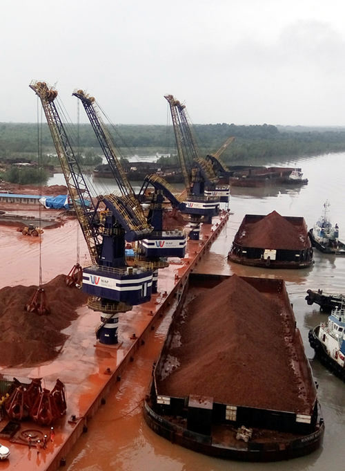 目前,韋立聯(lián)盟港口公司(WAP)滿負(fù)荷運(yùn)營(yíng),“海西重機(jī)”牌固定式起重機(jī)質(zhì)量可靠、裝船速度快,成功助力博凱內(nèi)港打破了港區(qū)泊位每個(gè)潮水位只能裝1條駁船的生產(chǎn)瓶頸,多次創(chuàng)造港區(qū)駁船轉(zhuǎn)運(yùn)新紀(jì)錄,為港區(qū)出礦量打下堅(jiān)實(shí)基礎(chǔ),大大提高了港區(qū)運(yùn)營(yíng)能力。未來隨著該批固定式起重機(jī)的投產(chǎn),屆時(shí)14臺(tái)海西重機(jī)設(shè)備將為博凱內(nèi)港實(shí)現(xiàn)年3000萬噸裝卸目標(biāo)提供有力保證。