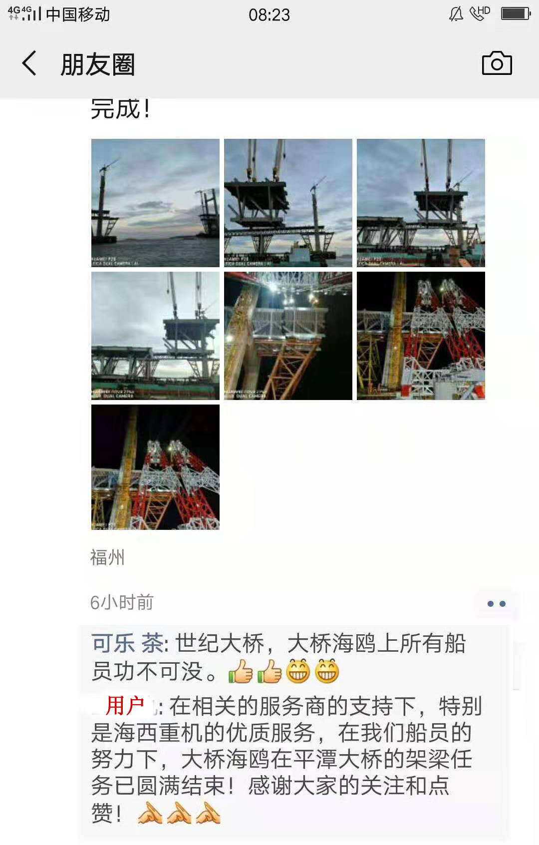 7月28日接到用戶通知,“大橋海鷗號”將于7月28日晚進(jìn)行第64、65片8鋼梁的架設(shè)(單重達(dá)3200噸),為保證工程順利實施,請海西重機(jī)安排技術(shù)人員進(jìn)行保駕護(hù)航,用船長的話就是“你們在現(xiàn)場,感到心里踏實”。公司當(dāng)即安排附近正在羅源灣碼頭做電控系統(tǒng)改造的宋靖浩工程師,前往現(xiàn)場。7月2900日傍晚5點,吊裝正式開始,各崗位人員各負(fù)其責(zé),密切配合。直到凌晨時分,2片鋼梁順利架設(shè)完成,設(shè)備運行一切正常,用戶對海西重機(jī)設(shè)備的穩(wěn)定性和服務(wù)的及時性給予了高度評價。至8月6日,平潭海峽公鐵大橋,最后一片鋼梁順利架設(shè)完成, “大橋海鷗號”不辱使命,圓滿完成任務(wù)。用戶喜悅的表揚,就是對我們優(yōu)質(zhì)服務(wù)的認(rèn)可和正反饋。