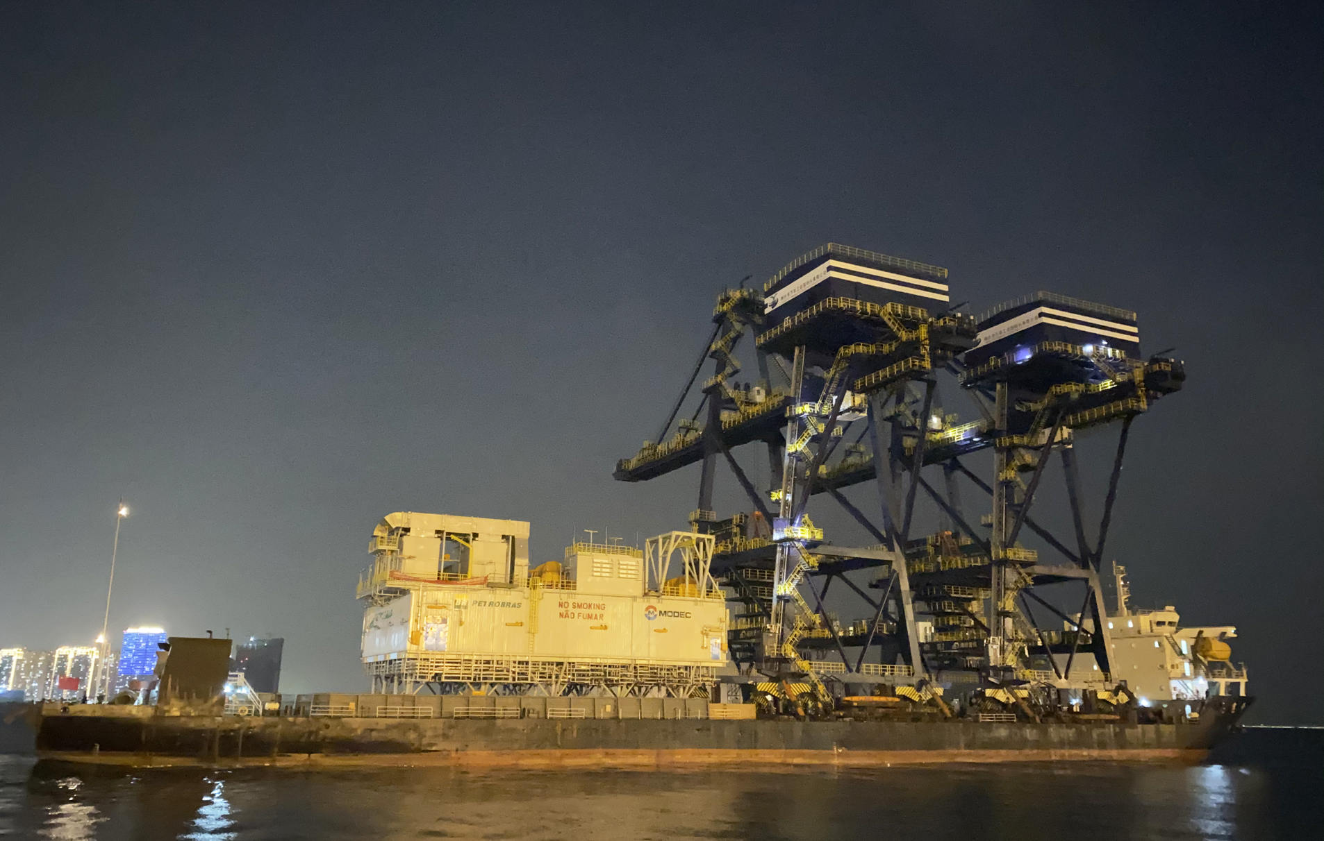 11月12日18時,海西重機為煙臺港萬華工業(yè)園碼頭有限公司建造的2臺1500t/h橋式抓斗卸船機順利發(fā)運。