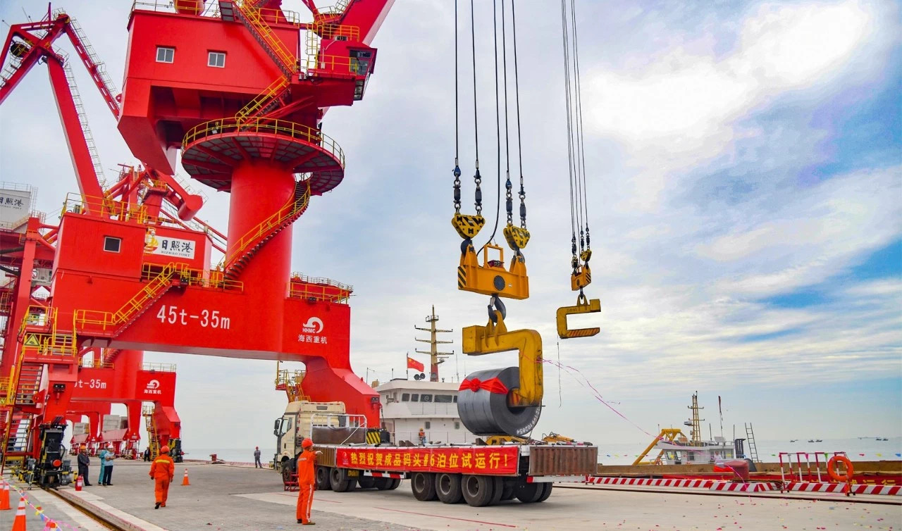 3臺門機(jī)應(yīng)用于用戶剛剛投產(chǎn)的6#泊位——日照鋼鐵精品基地配套成品碼頭工程泊位,泊位為4萬噸級雜貨泊位,長度265米,年設(shè)計通過能力120萬噸。作為日照港山鋼碼頭有限公司成立以來建成的第一個泊位,將與山鋼集團(tuán)日照公司實現(xiàn)“前港后廠”一體化運營,滿足成品及部分原料海路運輸?shù)钠惹行枨螅瑸殇撹F精品基地開辟最便捷、最經(jīng)濟(jì)的通道,推動“鋼港”發(fā)展邁上新臺階。