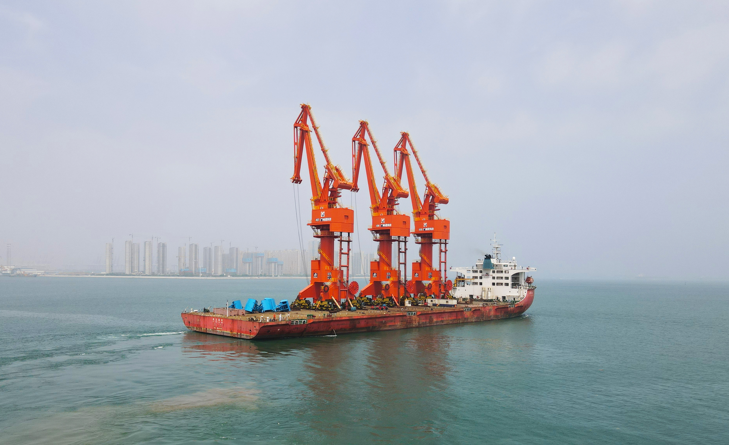 6月11日上午,武漢船機海西重機為廣州港股份有限公司南沙糧食通用碼頭分公司建造的3臺40T-45M四連桿門座起重機順利發(fā)運。