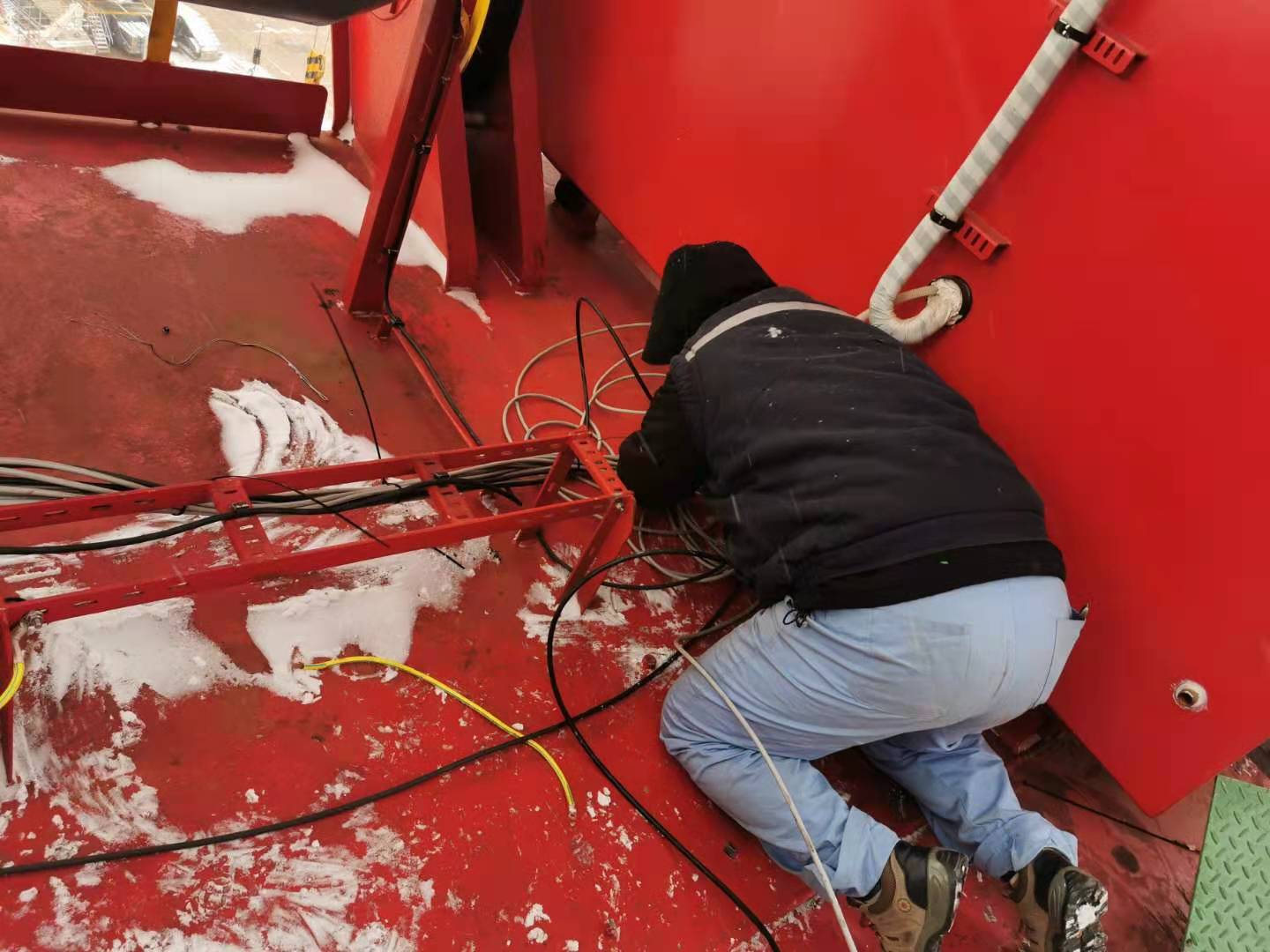 自2020年12月31日開(kāi)始,為了追趕進(jìn)度,我們團(tuán)隊(duì)頂著冷風(fēng),放棄休息時(shí)間,把臂架到機(jī)房、司機(jī)室、電氣房的電纜敷設(shè)下來(lái),進(jìn)行捆扎。為了與船廠穿鋼絲錯(cuò)開(kāi),吃飯的時(shí)間點(diǎn)總是往后推遲。甚至為了節(jié)省時(shí)間,自己提前帶好面包,中午簡(jiǎn)單吃點(diǎn),為的就是把工作搶一搶,看著已經(jīng)穿到位的電纜,不禁感嘆隊(duì)友們的拼勁兒。