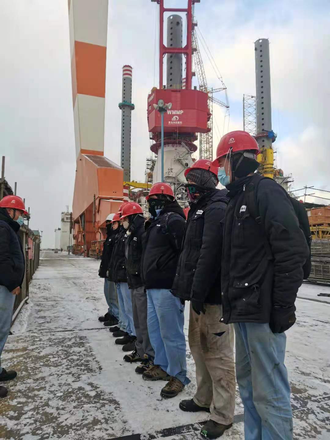 1月7日,山東經(jīng)歷了一次罕見(jiàn)的寒潮,煙臺(tái)下起了雪,這是第二場(chǎng)雪,也是我們要克服的又一個(gè)惡劣天氣,寒風(fēng)里摻雜著雪,氣溫也是零下好幾度。一如既往的早班會(huì),特意強(qiáng)調(diào)一下安全,然后根據(jù)現(xiàn)場(chǎng)情況,交代好工作,我們就整裝上陣,開(kāi)始一天工作?,F(xiàn)場(chǎng)的問(wèn)題在一個(gè)一個(gè)解決,堅(jiān)定了我們的信心。我常常鼓勵(lì)大家,“咱們?cè)傩量嘈量?,早日結(jié)束。”隊(duì)友們也會(huì)簡(jiǎn)單回一句暖心的話,“這都不是事,我們都想早點(diǎn)干完?!?/span>
