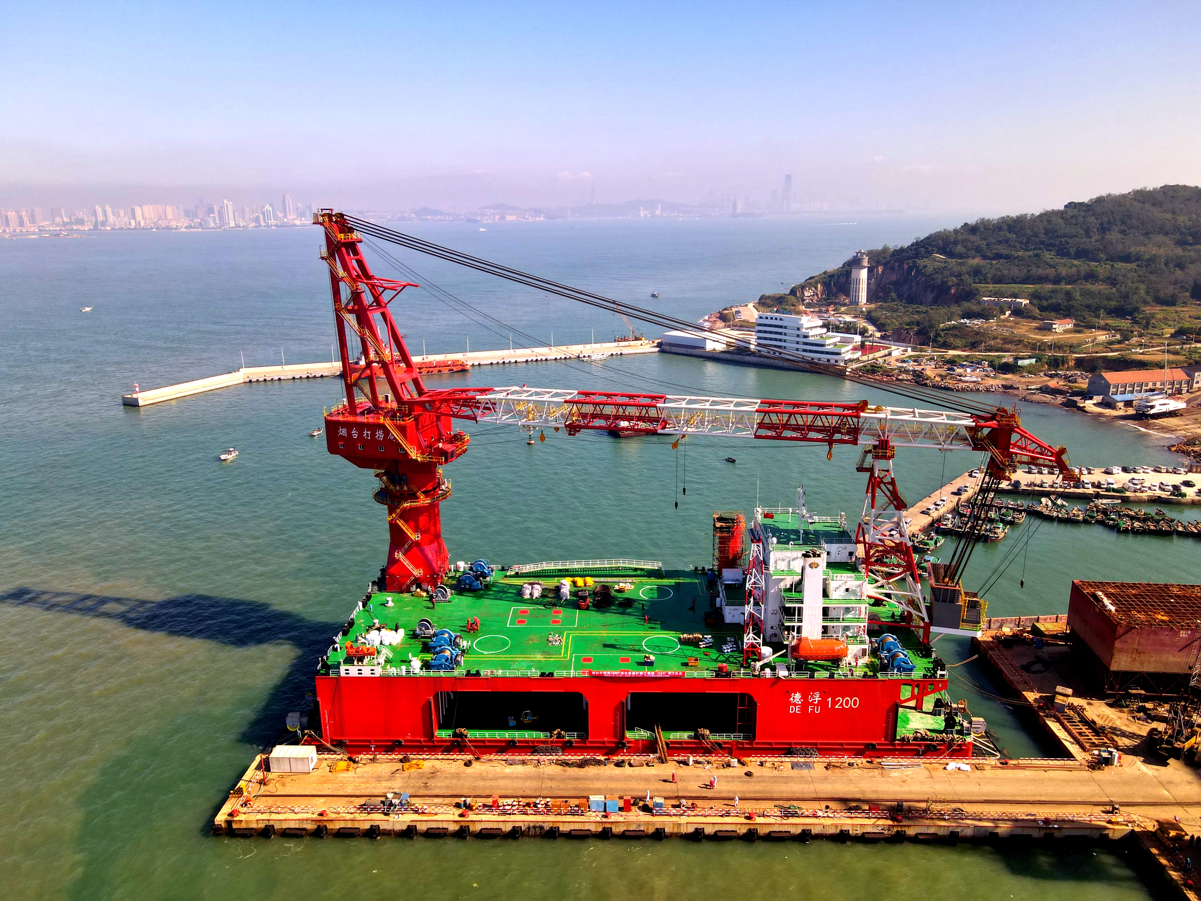我國首艘淺水坐底打撈工程船“德浮1200”在海西重機碼頭順利發(fā)運