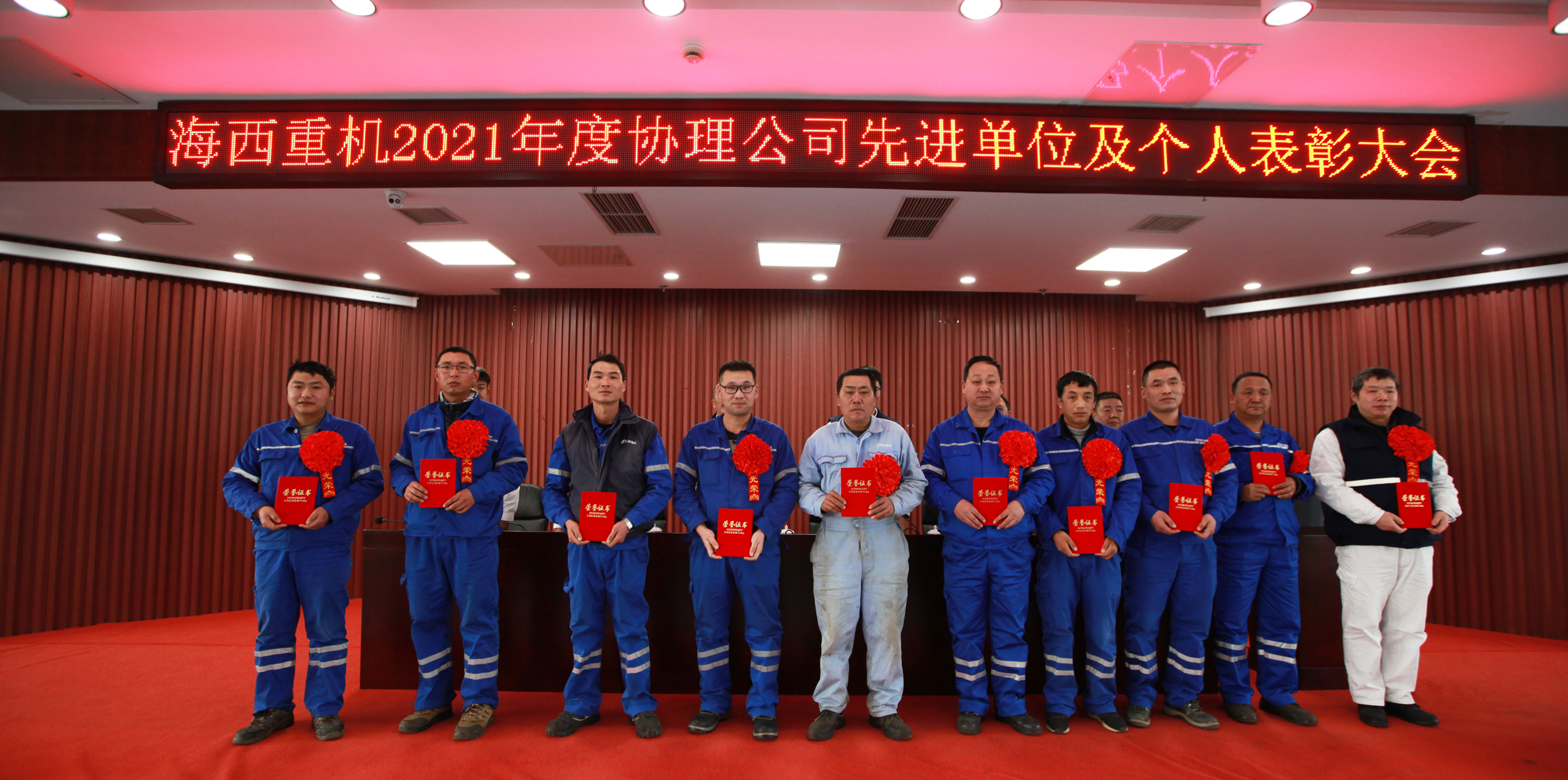 1月21日,中國船舶集團(tuán)旗下武漢船機海西重機公司2021年度優(yōu)秀協(xié)理公司及其優(yōu)秀技能人員、先進(jìn)個人表彰大會在901會議室隆重召開。公司黨委副書記、總經(jīng)理蔣新標(biāo),黨委副書記、紀(jì)委書記、工會主席朱聲凱,副總經(jīng)理代振華、楊少波、韓燕驍、謝宛朋出席會議,公司各部門負(fù)責(zé)人、各協(xié)理公司代表、先進(jìn)個人等120余人參加了表彰大會。
