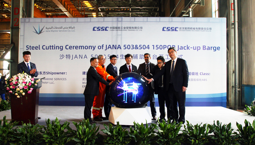 3月15日,中國船舶武漢船機(jī)海西重機(jī)承建的沙特JANA 150人生活服務(wù)平臺(tái)順利開工。JANA船東公司、ABS船級(jí)社、中國船貿(mào)、武漢船機(jī)、海西重機(jī)公司代表出席儀式。