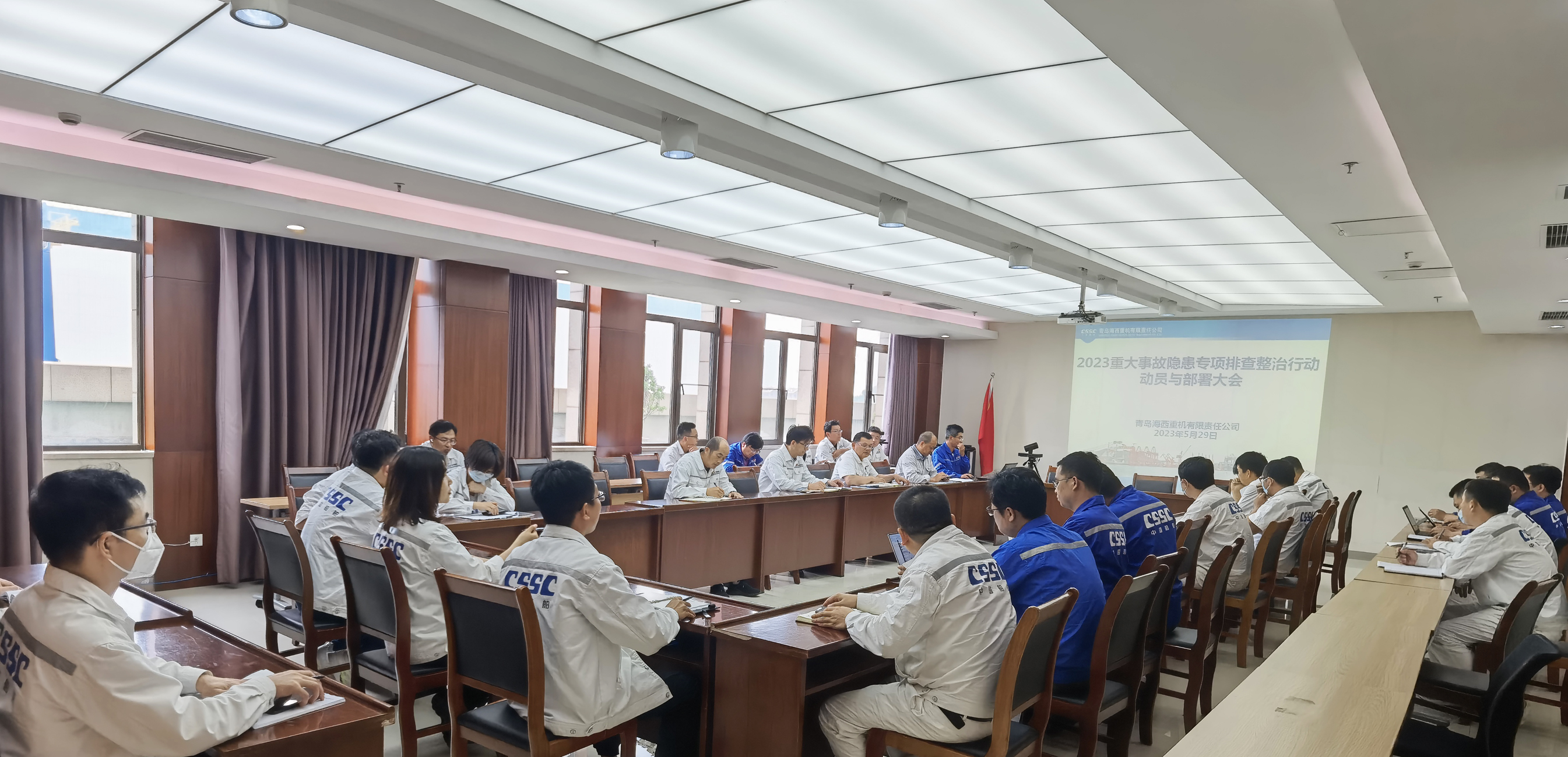 為認(rèn)真落實(shí)黨的二十大精神、習(xí)近平總書記關(guān)于安全生產(chǎn)重要論述和重要指示批示精神,按照青島市應(yīng)急管理局、集團(tuán)公司、武漢船機(jī)的決策部署及工作要求,中國船舶集團(tuán)旗下武漢船機(jī)海西重機(jī)公司于近日組織召開重大事故隱患專項(xiàng)排查整治行動(dòng)動(dòng)員與部署大會(huì),武漢船機(jī)安全總監(jiān)江琳,公司黨委書記、董事長李儒新,黨委副書記、紀(jì)委書記朱聲凱,副總經(jīng)理代振華以及相關(guān)部門負(fù)責(zé)人出席會(huì)議。