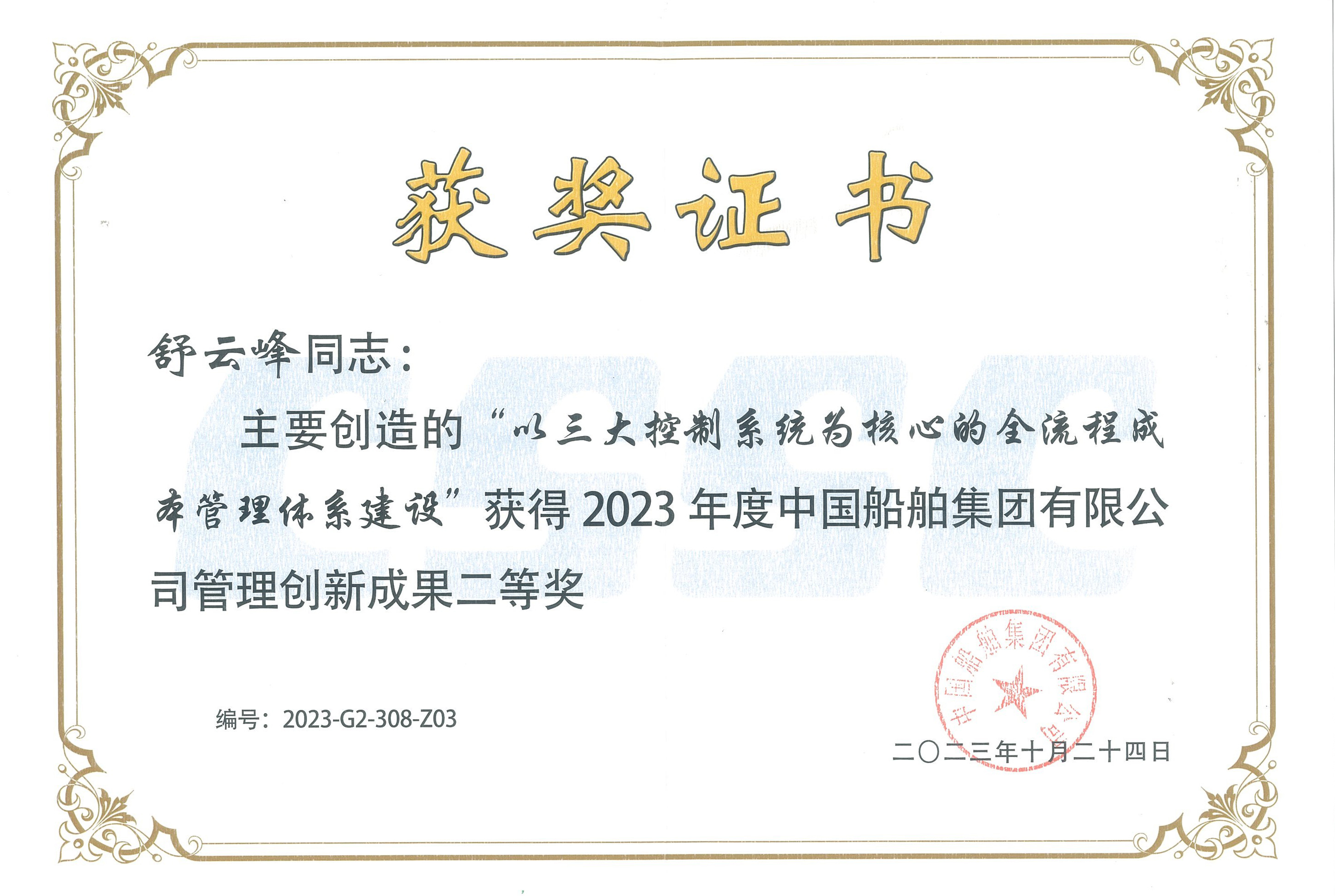 近日,集團(tuán)公司傳來喜訊,海西重機“以三大控制系統(tǒng)為核心的全流程成本管理體系建設(shè)”管理創(chuàng)新成果榮獲中國船舶集團(tuán)2023年度管理創(chuàng)新成果二等獎。