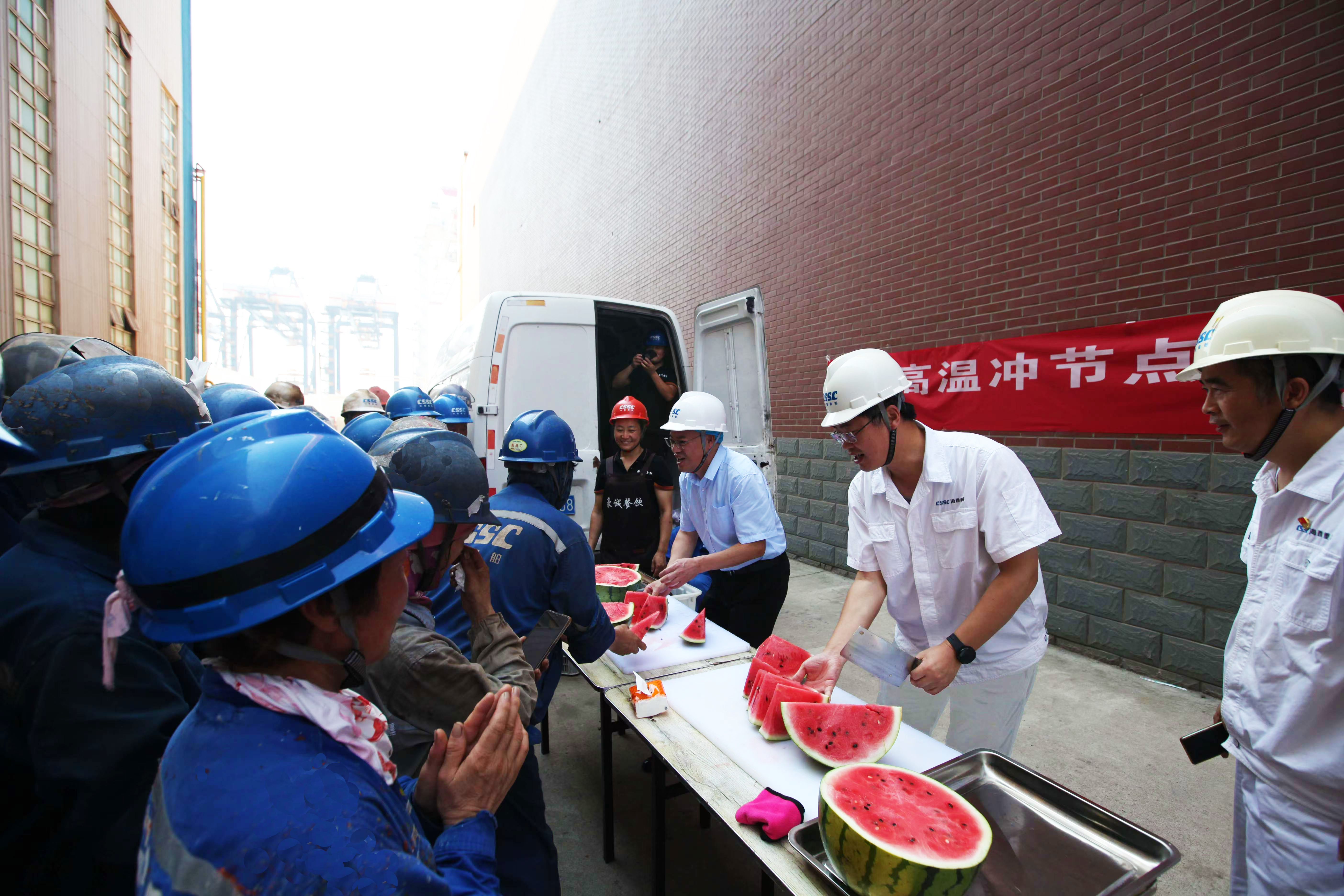 7月31日下午,武漢船機總會計師、工會主席陳世龍,海西重機總經(jīng)理蔣新標(biāo)、工會主席朱聲凱等公司領(lǐng)導(dǎo)來到生產(chǎn)現(xiàn)場,為大家送上了解暑西瓜,表達(dá)了對一線員工的辛勤付出的感謝,叮囑大家高溫高濕天氣下要加強自我保護(hù),注意作息,確保平安度夏。