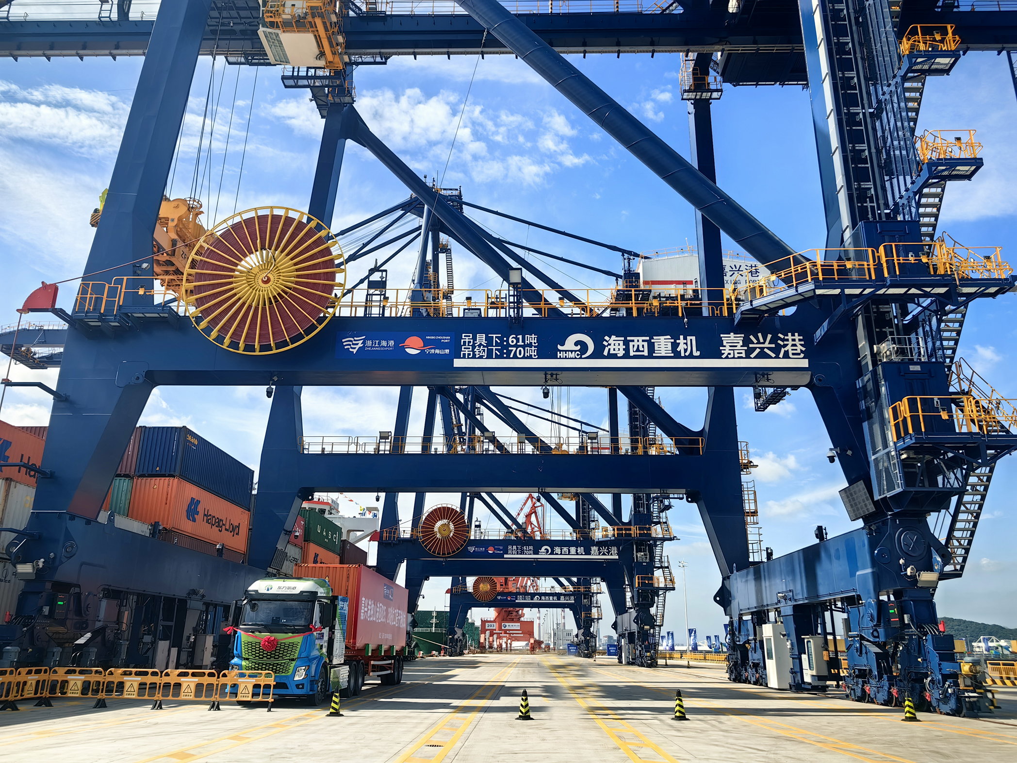 今年,海西重機連續(xù)為浙江省海港集團、寧波舟山港集團嘉興港打造了6臺具有遠程自動化控制功能的岸橋,該批設備吊具下額定起重量61噸,前伸距43米,配備起重機狀態(tài)監(jiān)測系統(tǒng)、稱重系統(tǒng)、自動消防系統(tǒng)等多種安全保護裝置及光伏系統(tǒng)、能量回饋系統(tǒng)等節(jié)能裝置,使用起來安全高效、綠色環(huán)保,可進一步提升港區(qū)的裝卸能力和服務水平,為港口的高質量發(fā)展賦能。