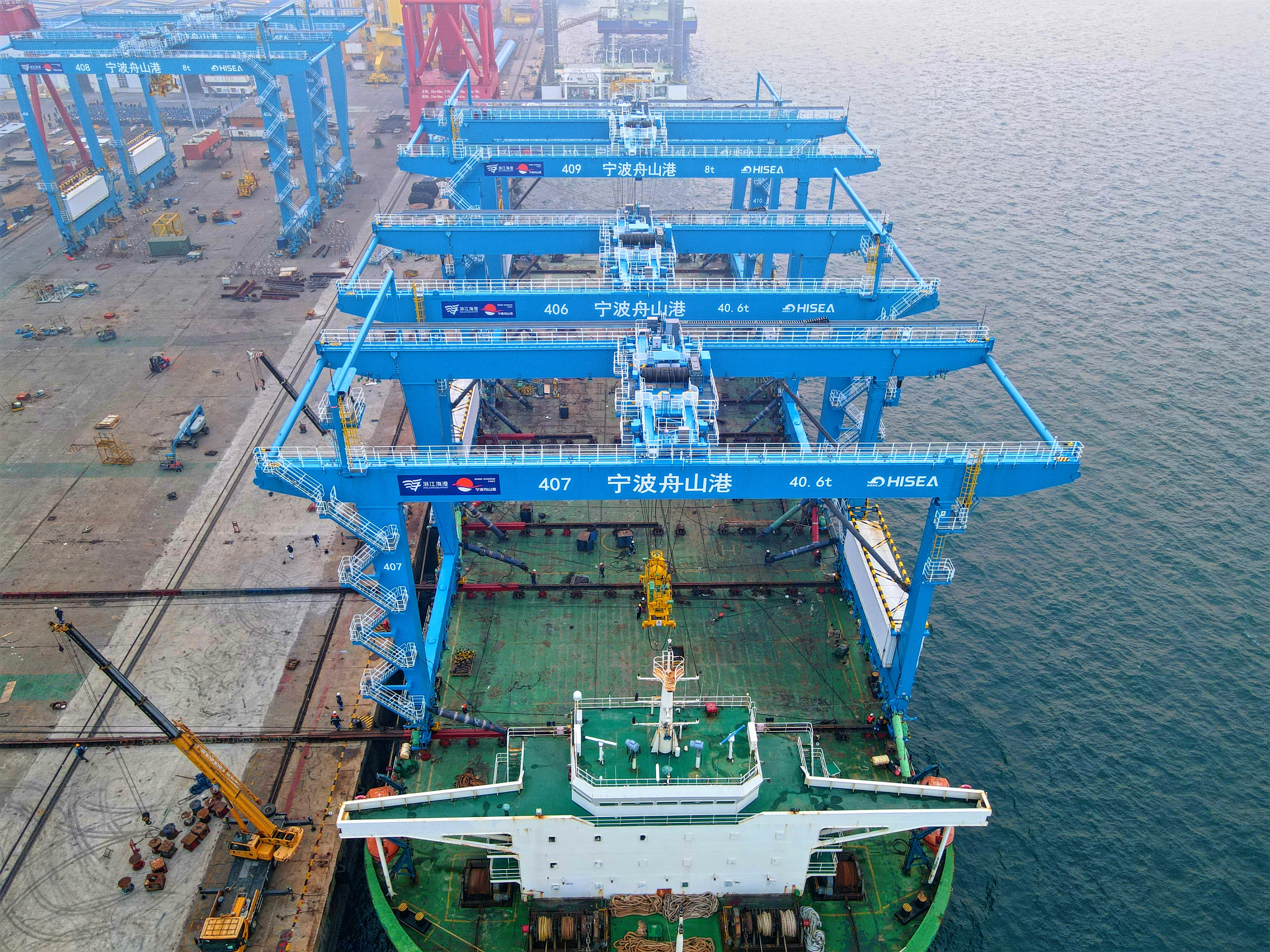 該批設(shè)備技術(shù)先進(jìn),集成了集卡引導(dǎo)、內(nèi)外集卡一鍵著箱、絕緣監(jiān)測、防碰撞等多項(xiàng)智能與安全系統(tǒng),構(gòu)建了完善的作業(yè)信息統(tǒng)計(jì)和狀態(tài)監(jiān)控及管理體系。設(shè)備可實(shí)現(xiàn)全自動化作業(yè),兼具遠(yuǎn)程控制和本地操作模式,具有運(yùn)行安全穩(wěn)定、生產(chǎn)作業(yè)高效、維護(hù)便捷等顯著優(yōu)勢。設(shè)備投用后,將進(jìn)一步提升港區(qū)集裝箱裝卸效率與服務(wù)能級,為寧波舟山港高質(zhì)量發(fā)展注入強(qiáng)勁新動能。