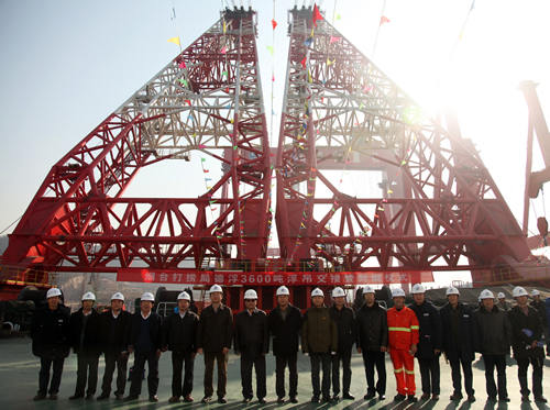 12月30日,由海西重機研制的3600噸大型浮吊交付暨列編儀式在公司碼頭隆重舉行,煙臺打撈局局長杜檸、CCS、公司董事長何紀武等領導出席了會議,標志著3600噸浮吊經過近兩年的制造正式交付并列編交通運輸部煙臺打撈局。