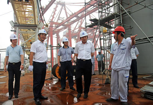 7月15日,中船重工副總經(jīng)理董強深入海西重機生產(chǎn)現(xiàn)場,查看了在制的90米自升式海洋平臺項目、為海南洋浦批量研制的岸橋、輪胎吊項目以及出口意大利的超巴拿馬岸橋(60t-62m岸橋)項目等,并就產(chǎn)品種類調(diào)整實效、安全生產(chǎn)責任制落實等與各級干部進行交流,提出了指導(dǎo)意見。
